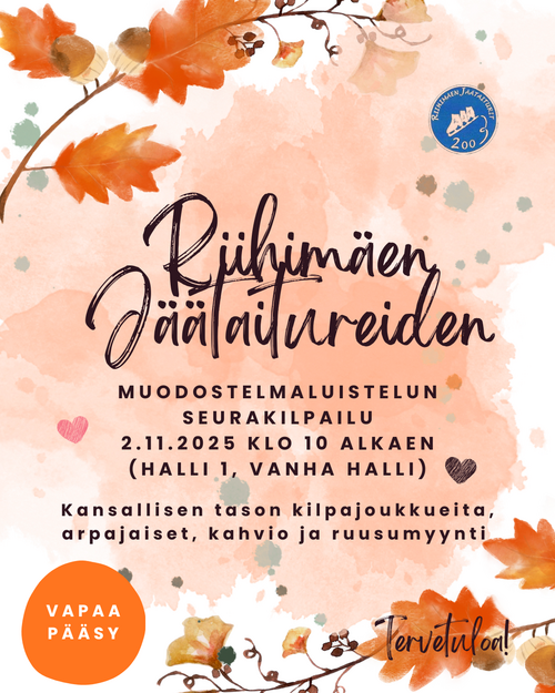 Riihimäen Jäätaitureiden seurakilpailu järjestetään sunnuntaina 2.11.2025 aikuisille, tulokkaille, noviiseille ja junioreille. Noviiseille ja junioreille 1+1-kilpailu ja tulokkaille elementtitapahtuma.